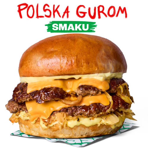 | 2x 100% smashowanej wołowiny, bułka maślana, smażona kapusta, sos musztardowo-cebulowy, 2x topiony ser cheddar, przyprawa kminkowa |